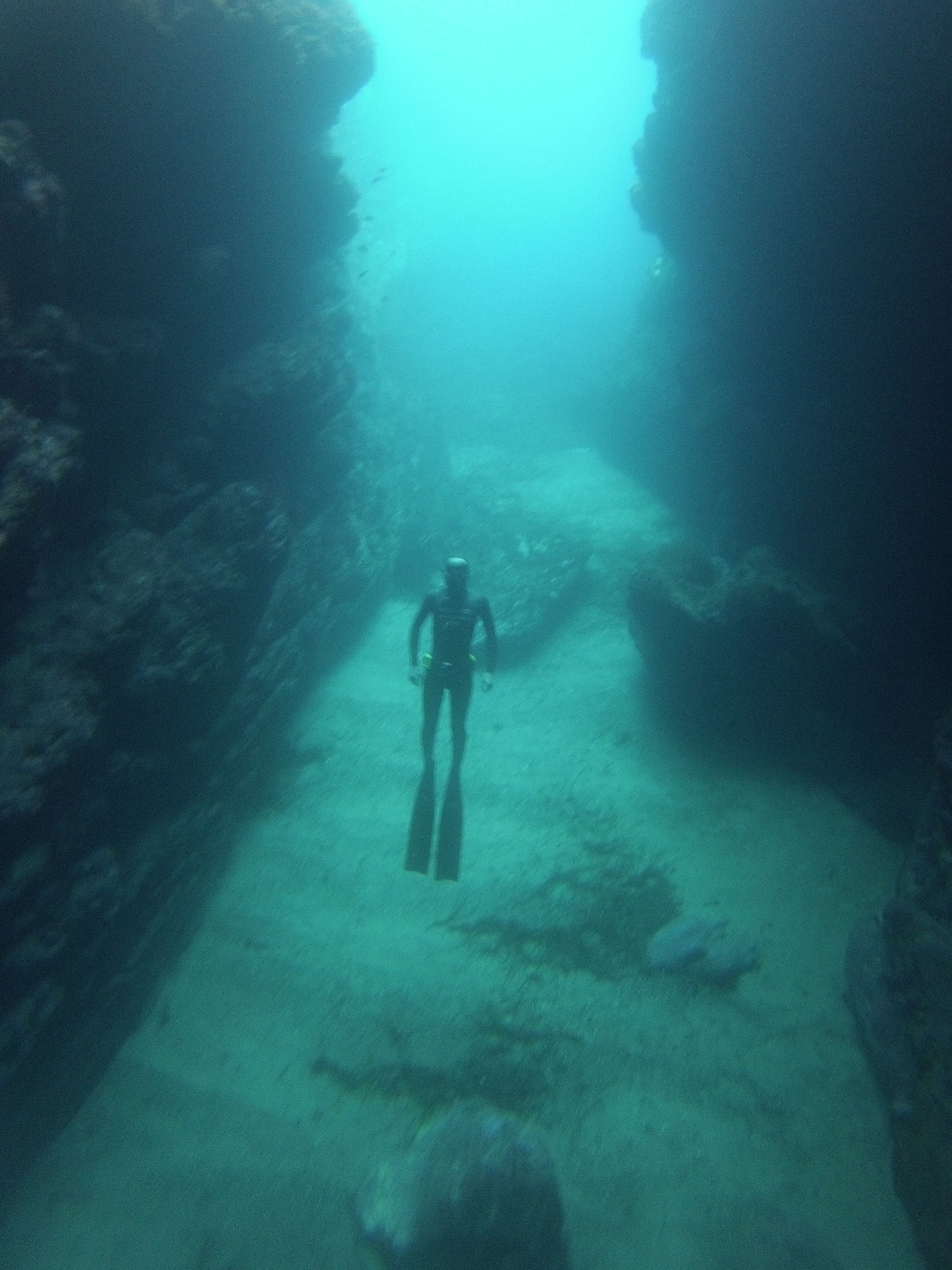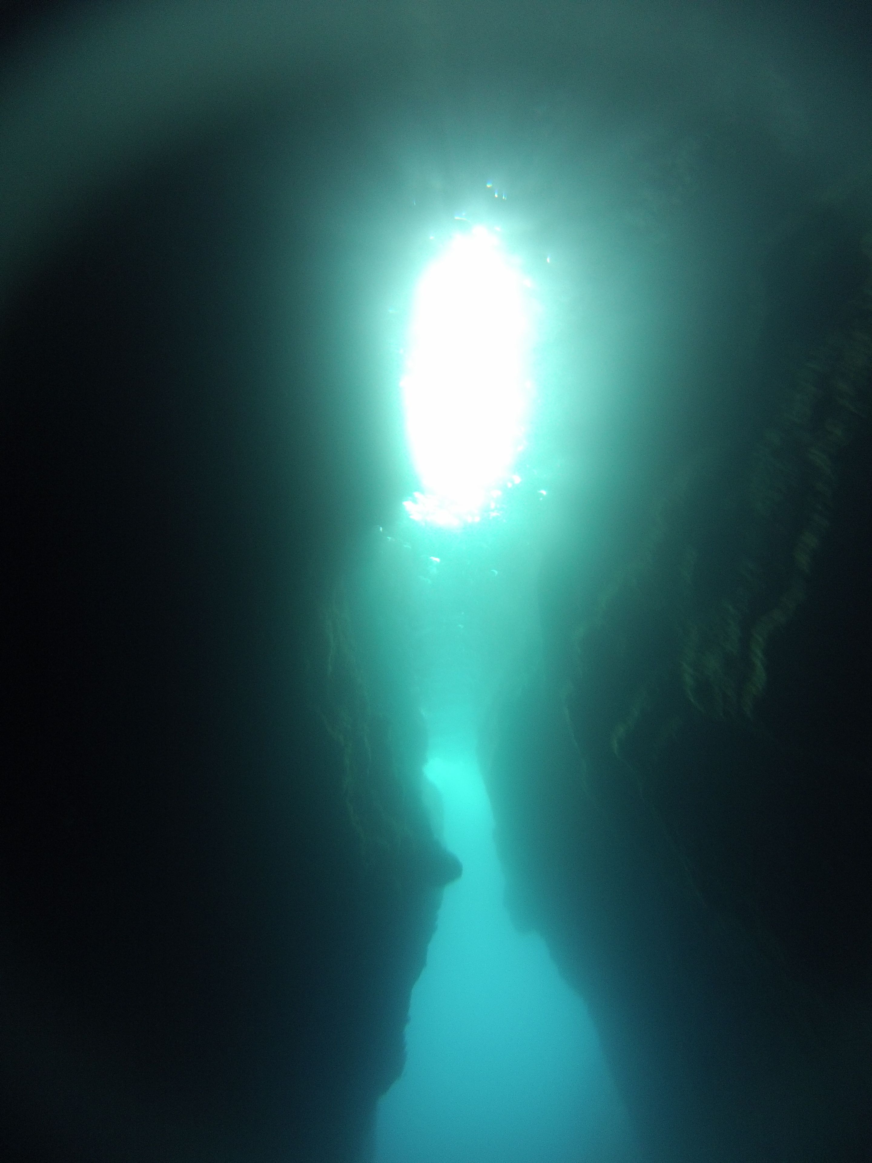 C’est une zone de plongée peuplée de multiples espèces de poissons. Il suffit de longer le bord de la côte pour se rincer l’œil. Nous avons également trouver une petite arche à passer pour atterrir dans un creux où se cachait un banc de poissons.