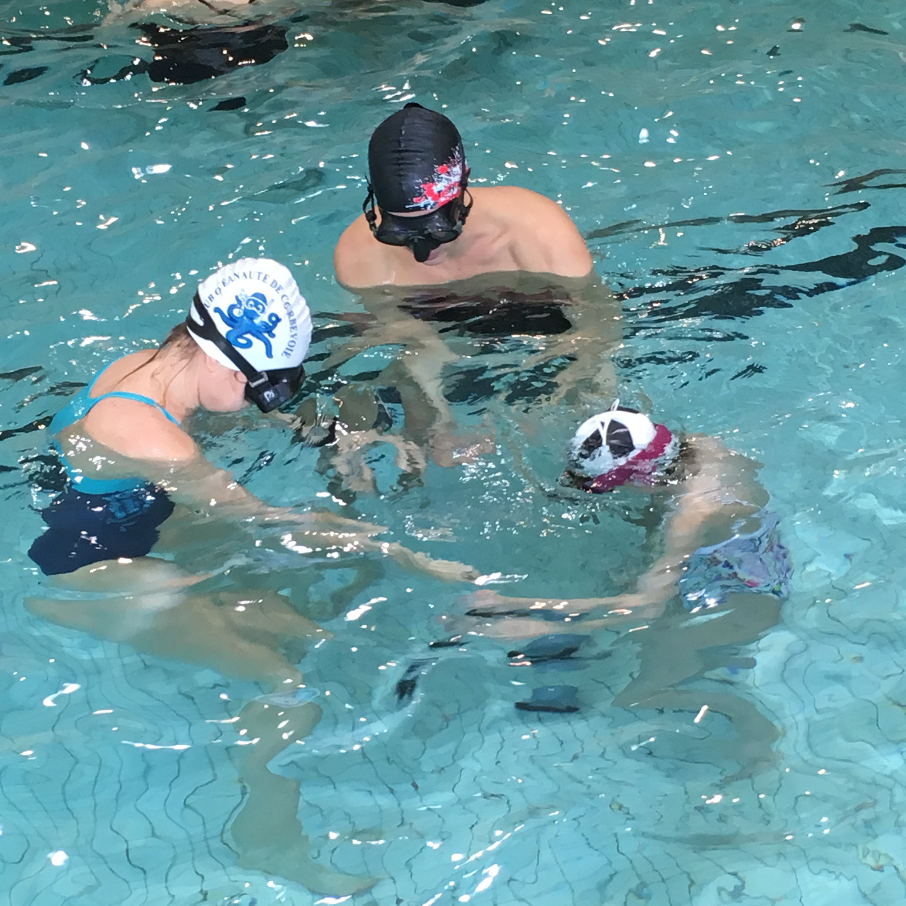 Cette année, la section apnée du Club Océanaute de Courbevoie, organisée pour la première fois des baptêmes d’apnée pour les enfants à la piscine de Courbevoie dans la cadre de la journée « nager à contre cancer »avec la Ligue contre le cancer.
