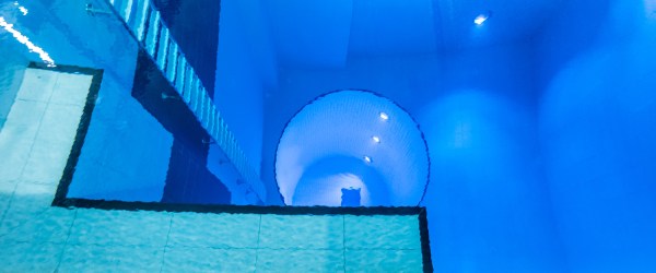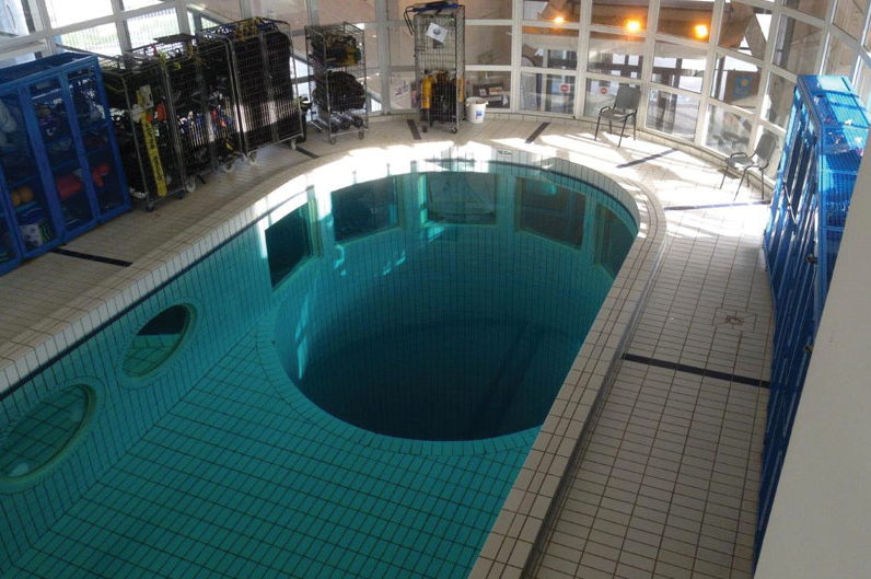 - Une fosse composée d’un bassin multiprofondeurs de 20m par 8m, avec différents paliers : 1,20m, 2m, 3m, 6m, 12m, et un tube de 6,5m de diamètre jusqu’à 20m de profondeur.