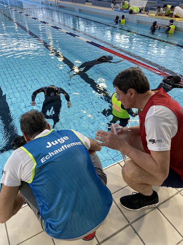 Ils ont été rapidement rejoints par un grand nombre de juges, de juges stagiaires mais aussi d’apnéiste de sécurité, de photographe. Pour les médecins, nous avons la chance d’avoir au sein du club AquaDôme Saint-Germain plusieurs médecin qui sont venus sans hésiter.