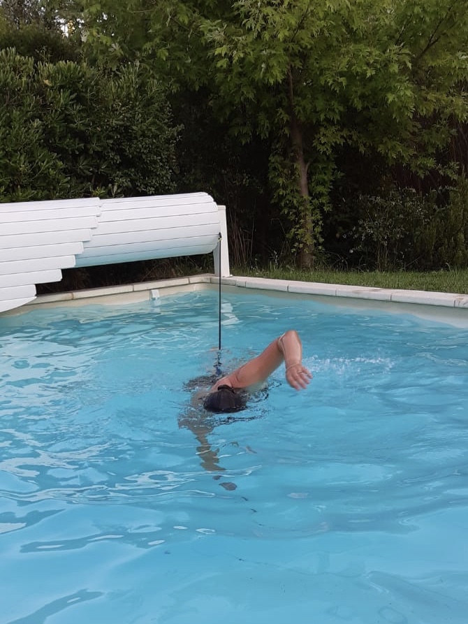 Cet été comme nous n’avions pas prévu de partir en bord de mer, nous avons décidé de louer une maison avec une petite piscine. Notre challenge a donc été de trouver une solution pour pouvoir nager dans ce petit bassin.