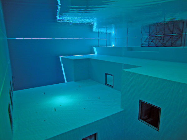 La piscine a été imaginée pour offrir des univers très variés comme celui d’une ville abandonnée engloutie, une salle d’arcade, des appartements à visiter ainsi que quelques épaves de voitures. Pour garantir la sécurité de tous, cinquante-six caméras surveillent en continu les plongeurs et les apnéistes s’exerçant dans la fosse.