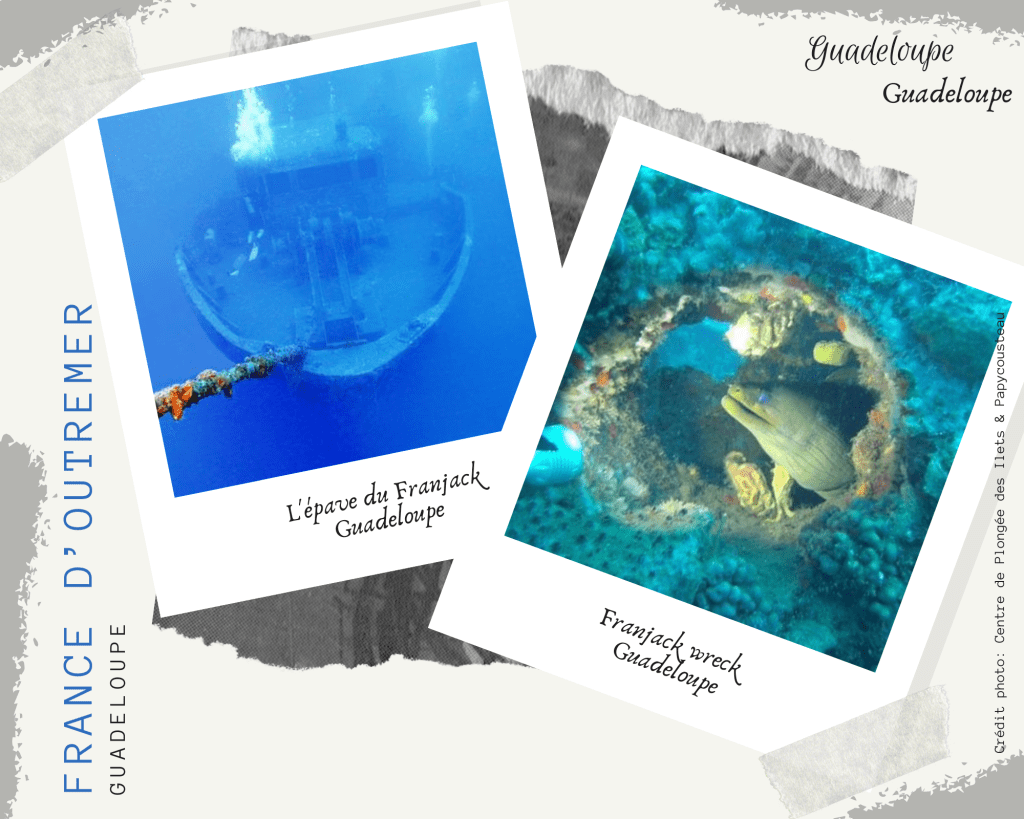 L’épave du Franjack est située aux portes de la Réserve Cousteau en Guadeloupe. Ce cargo-sablier a été volontairement coulé dans la baie de Pigeon en 1996 afin de créer un récif artificiel à proximité de la Réserve. Il repose sur un fond de sable par moins 23 mètres. Le pont avant est accessible dès -15 mètres de profondeur.