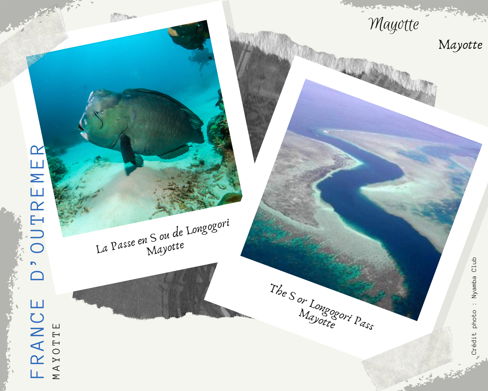 Classée réserve intégrale de pêche depuis 1990, le périmètre de la Pass en S ou dite Longogori qui signifie «tortueuse» en shimaoré, tire son nom du lit d’une rivière vieille de plus de 20 000 ans. Elle s’étend sur plus de 1380 hectares. On y recense plus de 50 espèces de coraux durs, 250 espèces de poissons et des habitats divers (récifs coralliens, herbiers…). Cette passe en S est un lieu unique à découvrir en apnée.