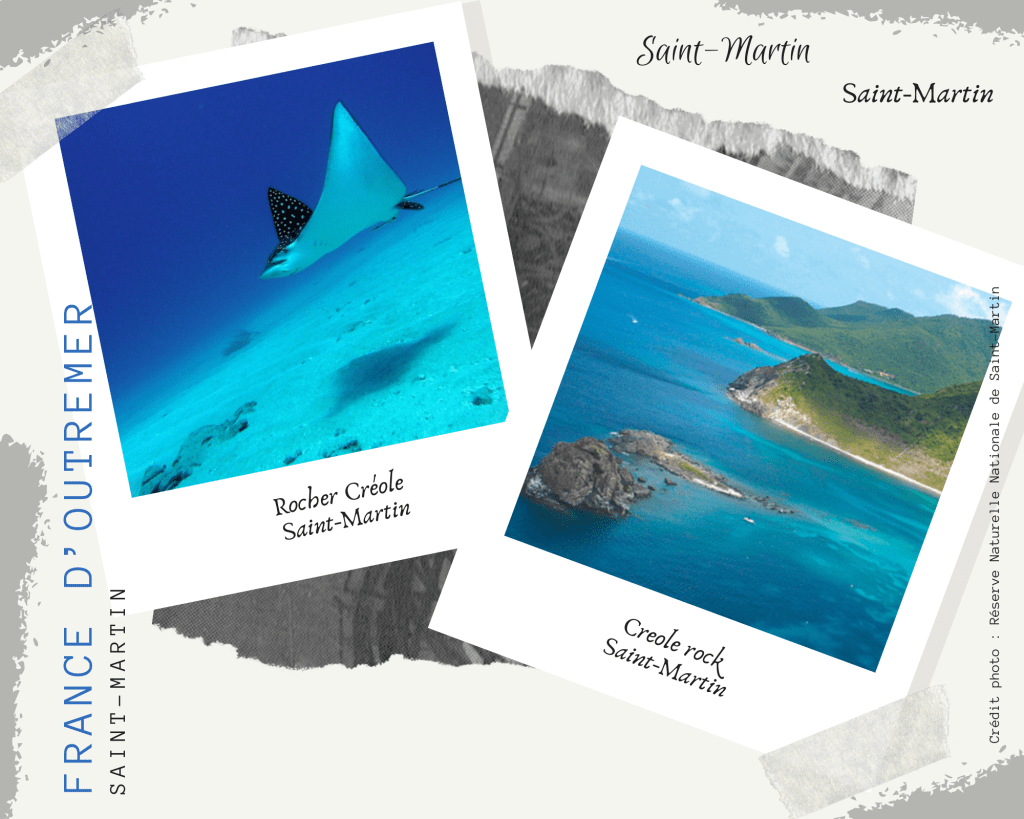 Les sites de plongée ne manquent pas autour de cette petite île des Caraïbes. La température de l’eau est toujours comprise entre 22 °C et 29 °C. Les plongées sur le Rocher Créole sont réputées comme étant les plus belles de Saint-Martin. Situé au large de la baie de Grand-Case, au nord-ouest de l’île, ,le Rocher Créole émergeant fait partie de la réserve naturelle de Saint-Martin. La profondeur est relativement faible puisqu’elle atteint les -10 mètres et est accessible à des apnéistes de tous niveaux. On peut y observer de nombreuses espèces comme des mérous, des raies pastenagues, raies léopard, raies manta et parfois des dauphins.